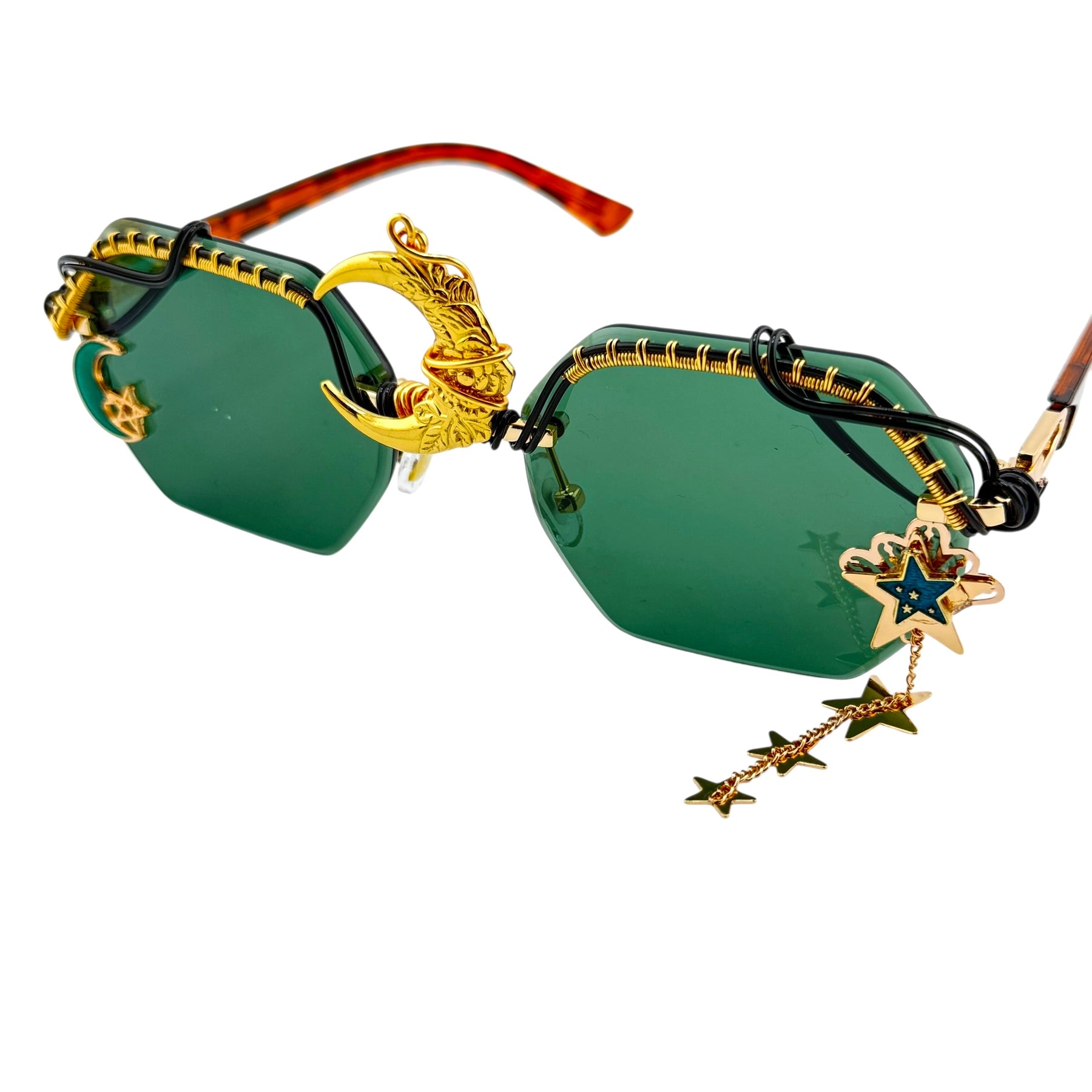 SpunGlasses are one of a kind Artisan HAND Wire Wrapped Sunglasses. Using a cold fusion technique called wire wrapping We hand weave intricate patterns with very thin high quality non tarnishing healing copper wire to create one of a kind eyewear.