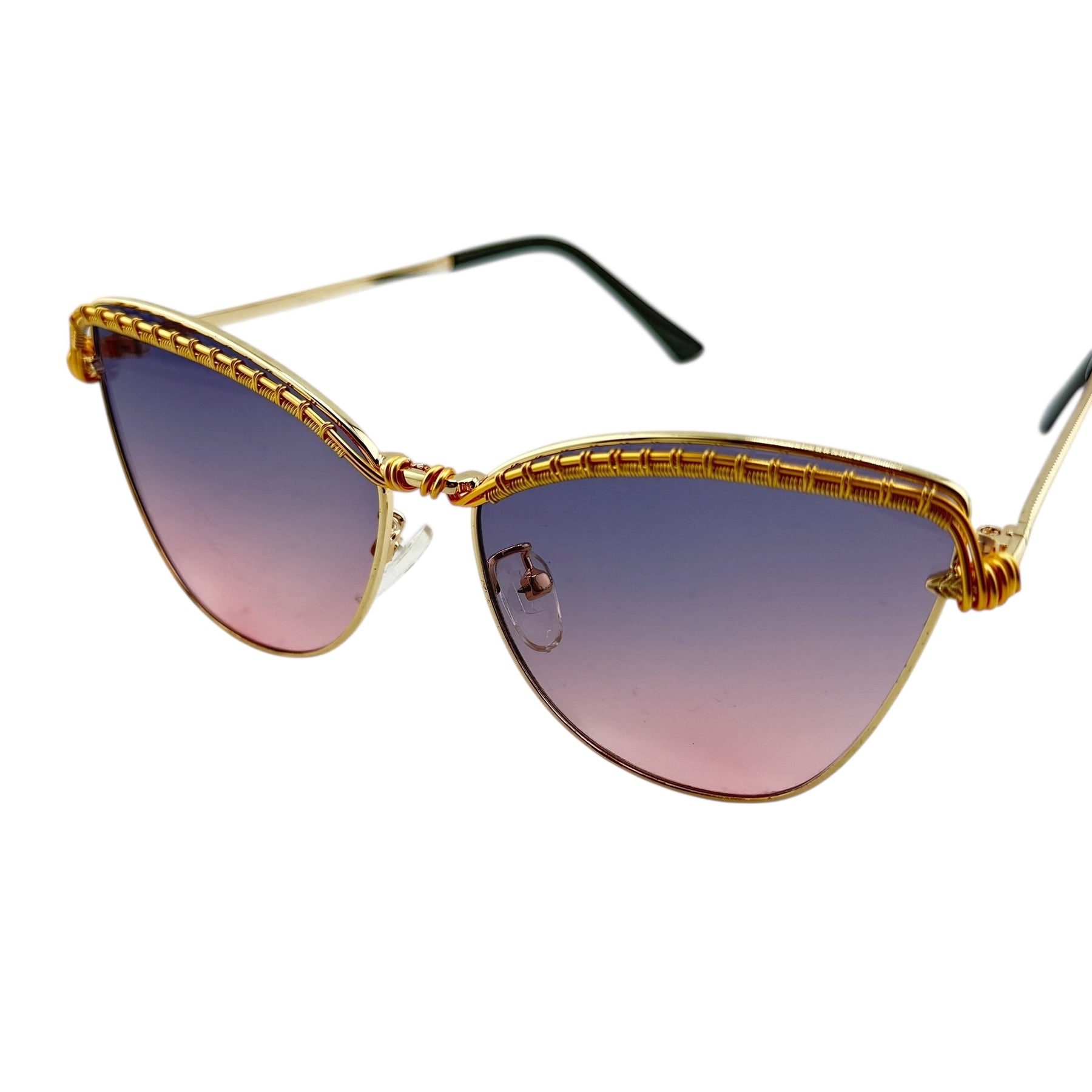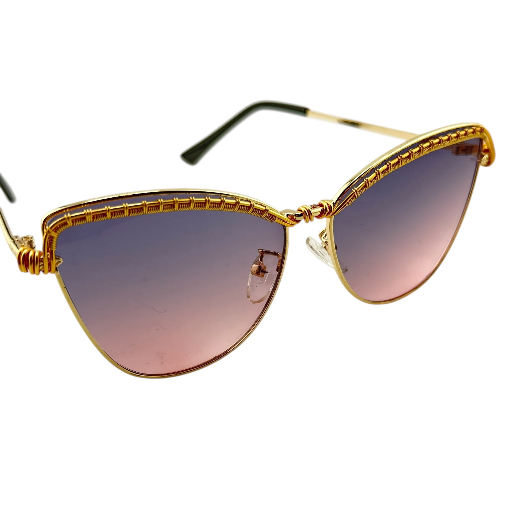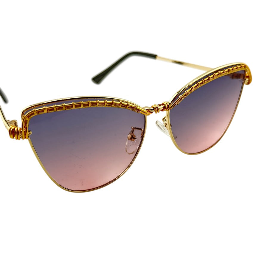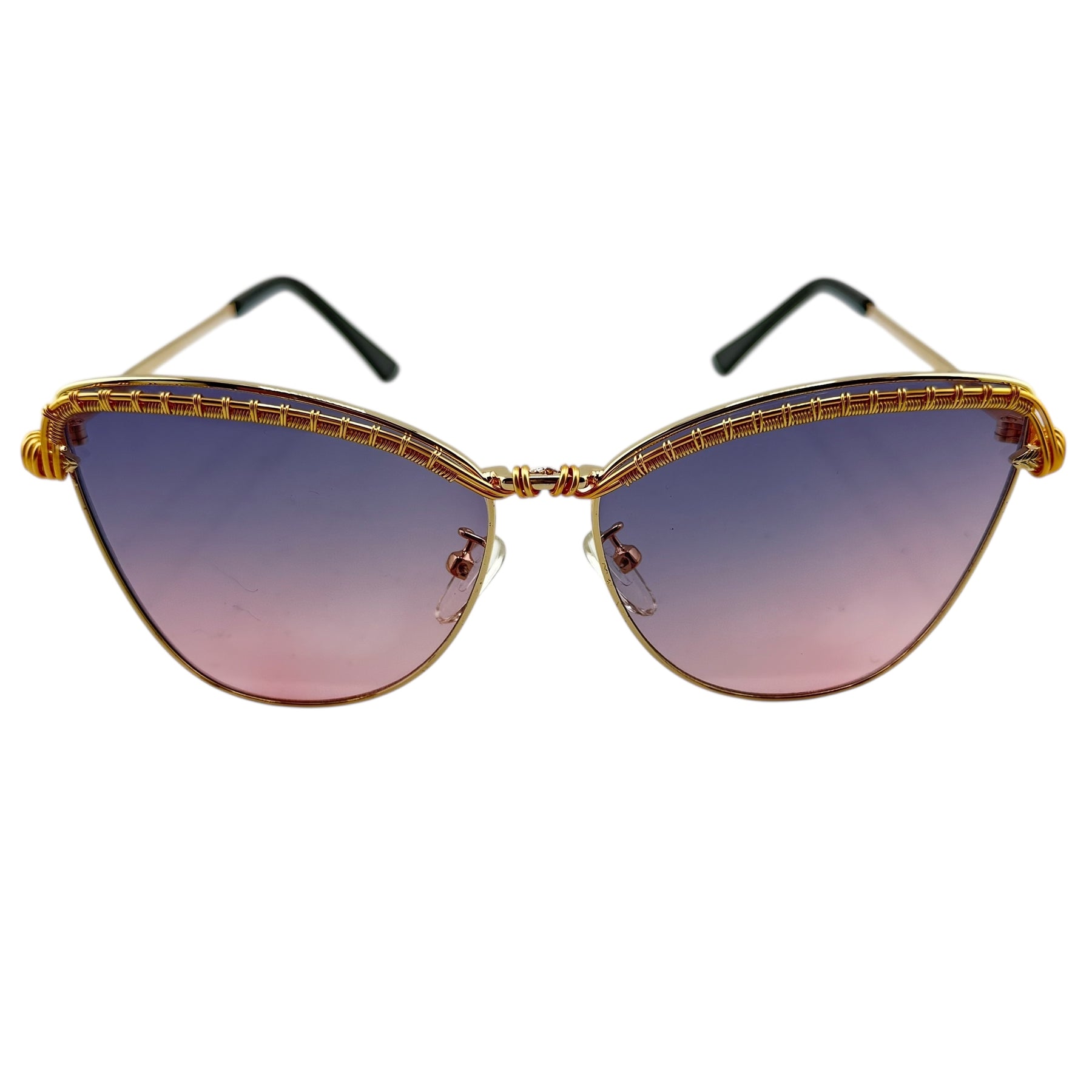 TWILIGHT MIRAGE is that perfect dreamy cat eye that goes from day to night without trying. Soft purple fades into a rosy sunset gradient, framed in gold wire wrapping that adds just the right amount of shimmer without extra embellishments. Clean, chic, and a little bit mystical.