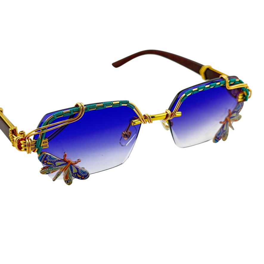 SpunGlasses are one of a kind Artisan HAND Wire Wrapped Sunglasses. Using a cold fusion technique called wire wrapping we hand weave all the wire by hand and hand apply the wire onto the glasses making no two pairs identical.