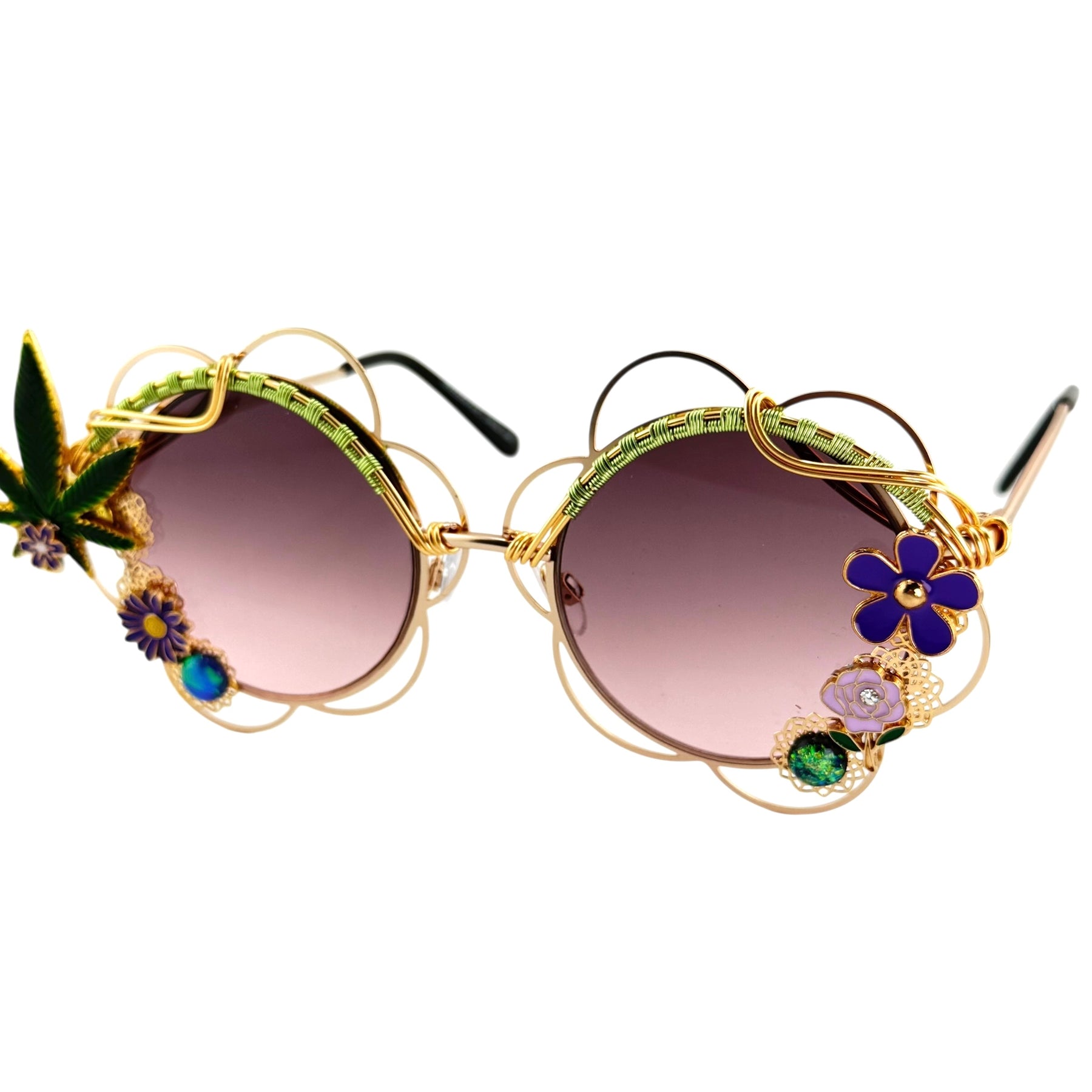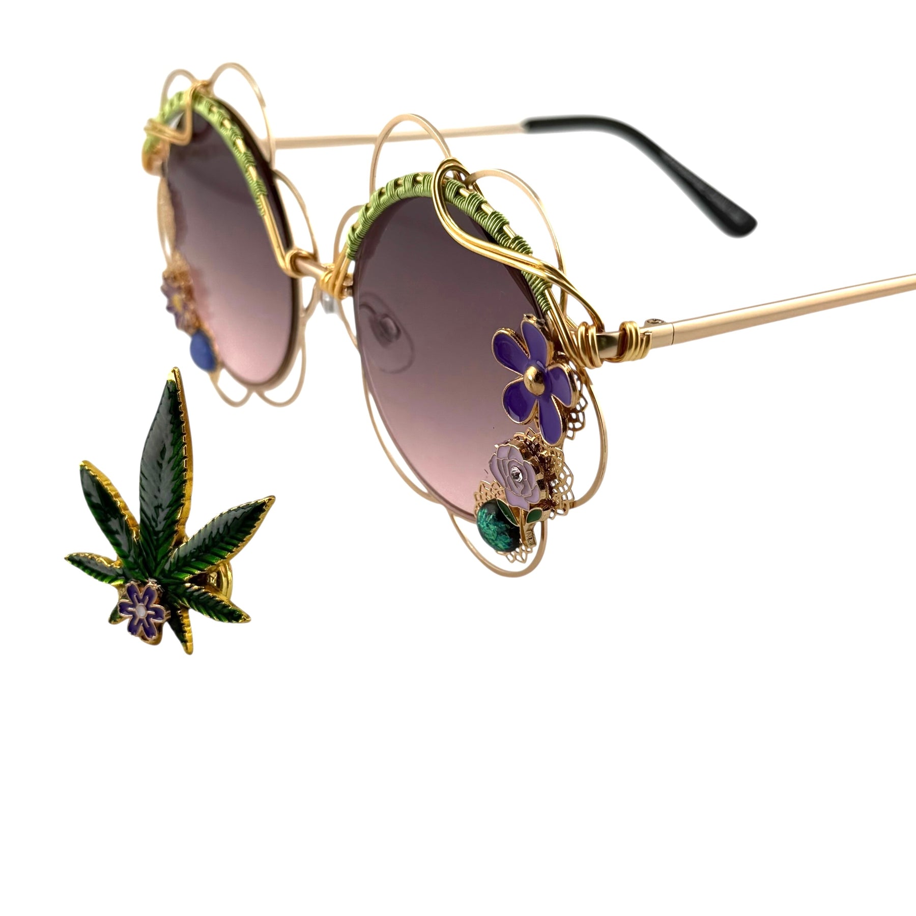 The SpunClip™ TM: This piece features a removable SpunClip™ TM. The sacred leaf can be detached from the temple of the frames and placed upon your hat or crown, allowing the energy to travel with you.