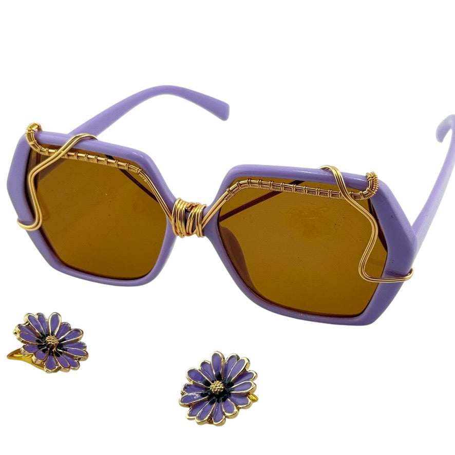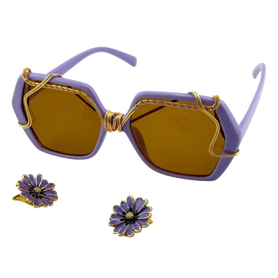 These Purple Daisy Bloom sunglasses are a true wearable art piece, hand wire-wrapped from start to finish using jewelry-grade, non-tarnishing copper. Every curve, wrap, and detail is done by hand in our studio