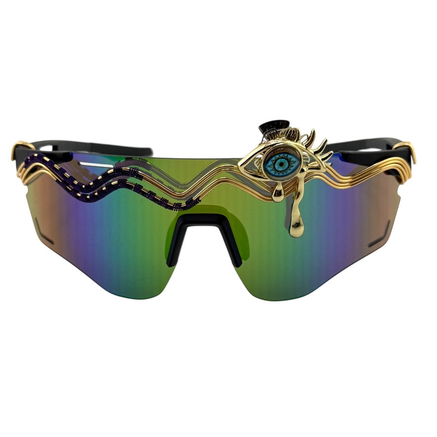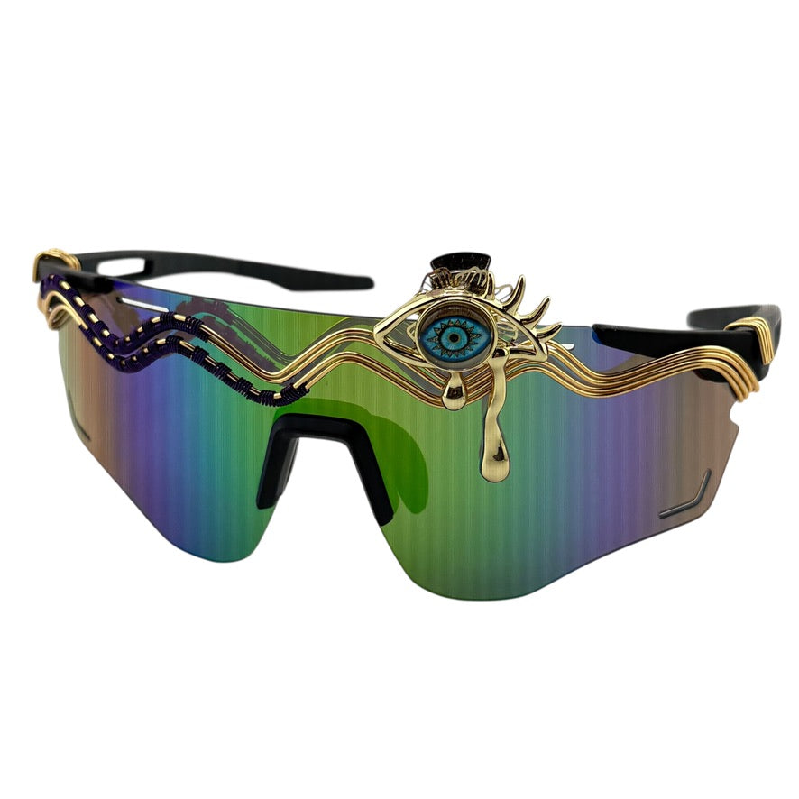 Spunglasses artisan shield aviator created using our cold-fusion wire-wrapping technique, wrapped entirely by hand with thread-thin, non-tarnishing jewelry copper.