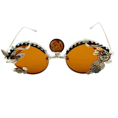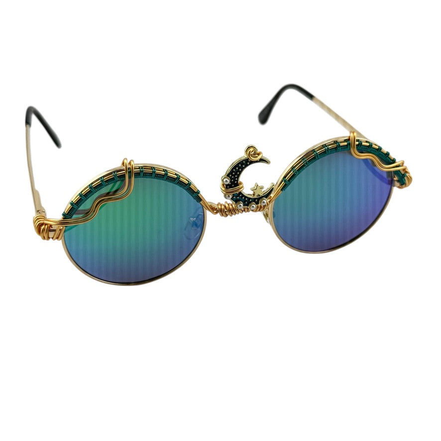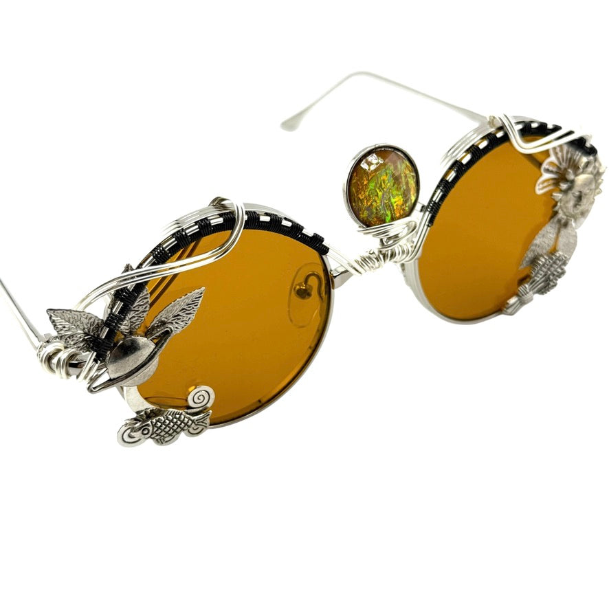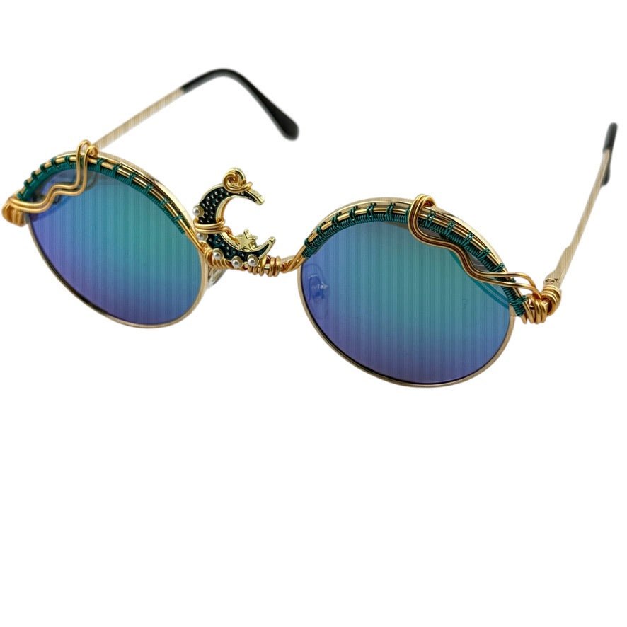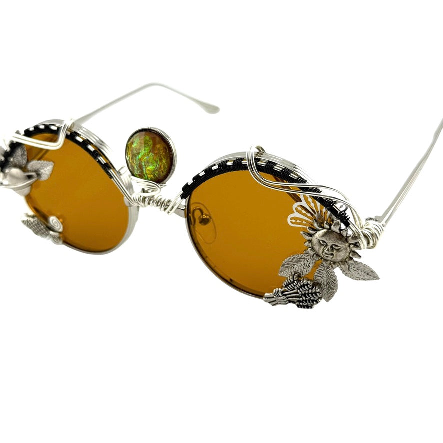 SpunGlasses are one of a kindArtisan HAND Wire Wrapped Sunglasses. Using a cold fusion technique called wire wrapping We hand weave intricate patterns with very thin high quality non tarnishing healing copper wire to create one of a kind eyewear.